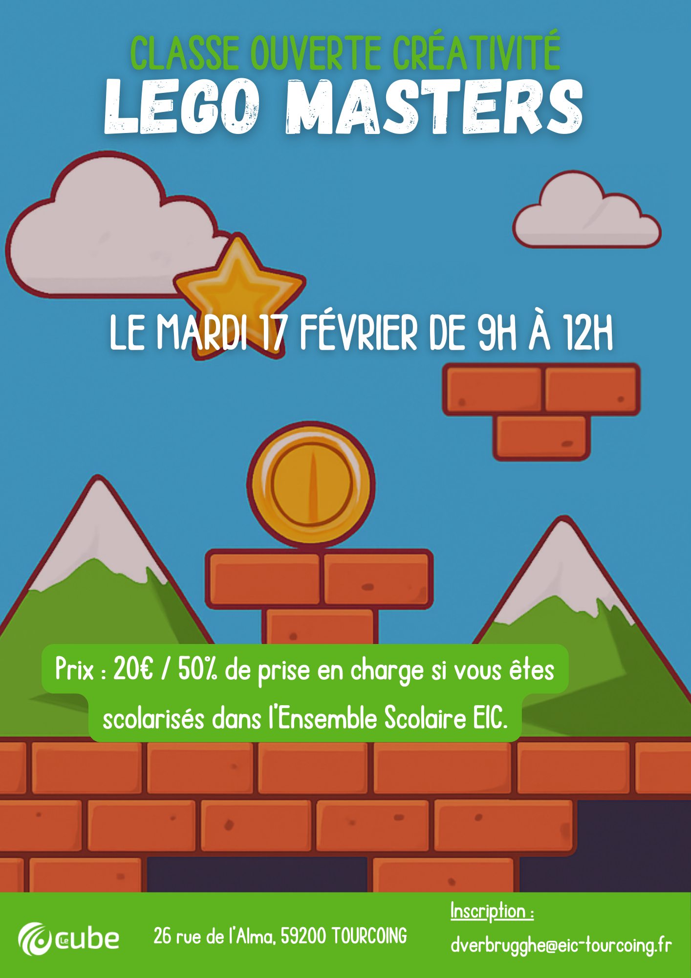 Classe ouverte Créativité – Lego Masters Pour s’inscrire, il faut envoyer un mail à dverbrugghe@eic-tourcoing.fr. + Ajouter à mon Agenda Google + Exportation iCal / Outlook 00 jours 00 heures 00 minutes 00 secondes Date 17 Fév 2026 Heure 9h00 - 12h00 Lieu Le Cube EIC Au croisement des rues de l'Alma et du Dragon, 59200 Tourcoing Partagez cet événement